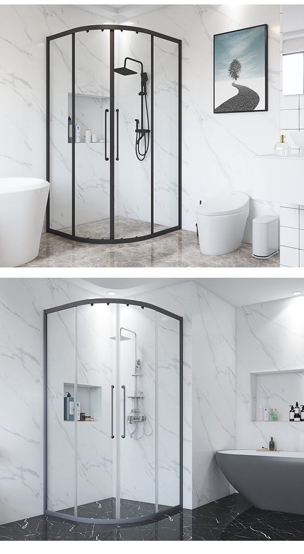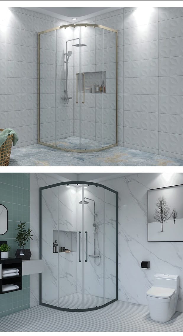 Chrome Aluminum Profile Framework The supporting structure employs aluminum extrusions finished with lustrous chrome plating delivering mirror bright reflectivity. Chrome’s metallic surface provides superior scratch resistance compared to painted finishes, while the lustrous finish enhances perceived spaciousness through light reflection. The aluminum substrate combines structural strength with natural corrosion resistance essential for humid bathroom environments. The profile design provides both structural support and water sealing, creating reliable enclosure performance.
