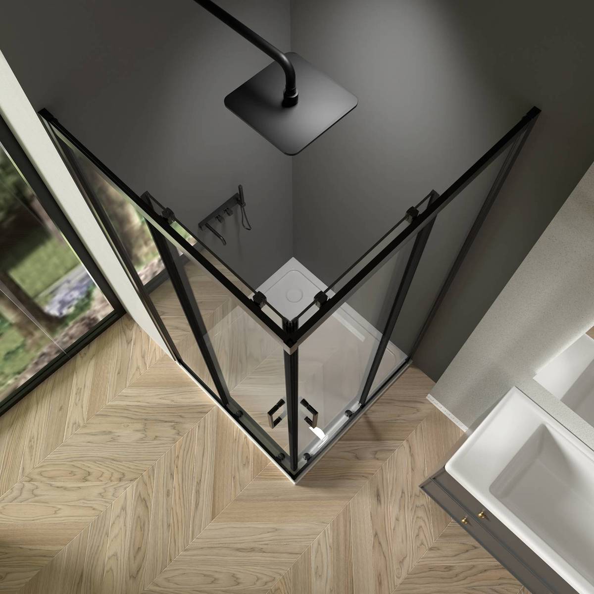 Square Geometric Precision The square configuration honors architectural geometry’s fundamental shapes, creating clean lines and right angles that complement contemporary bathroom design. The rectilinear form integrates seamlessly with modern tile layouts, coordinates with rectangular mirrors and vanities, and creates visual order in bathroom environments. The 900mm + 900mm dimensions provide generous interior space while maintaining reasonable exterior footprints suitable for most bathroom corners.