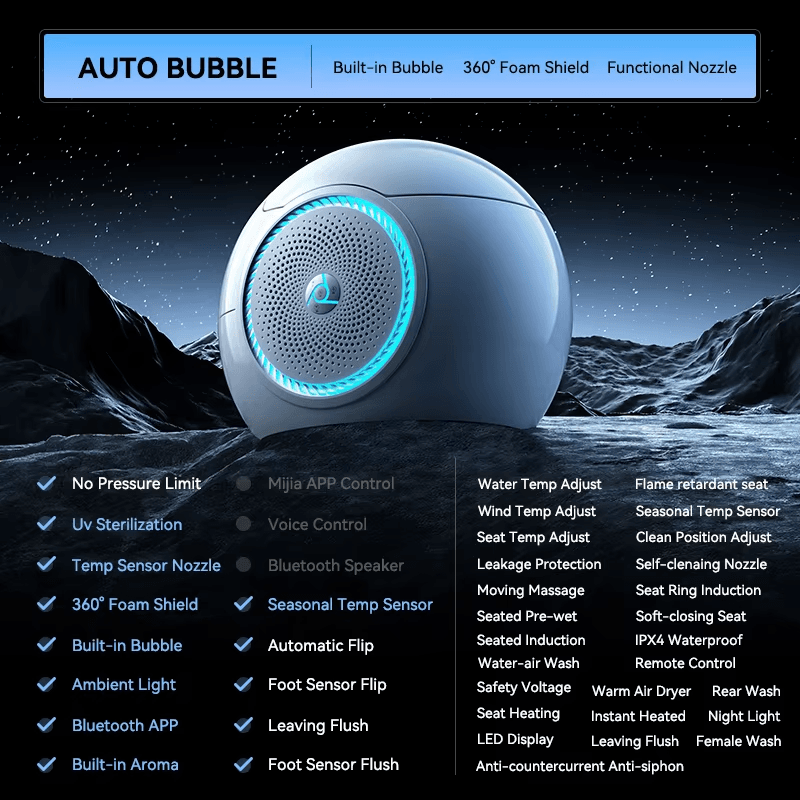 The NeoLuxe Smart Toilet offers a modern floor-mounted solution for advanced bathroom comfort. Featuring dual-flush water efficiency, heated seat, warm air drying, female washing, and remote control, it provides premium hygiene and convenience.