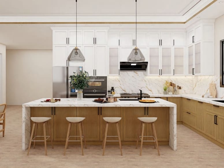 Luxury kitchen remodel projects with custom cabinetry, premium materials like marble countertops, high-end appliances, and architectural design services typically range from $75,000-$150,000 or more. Factors affecting cost include kitchen size, cabinet quality, countertop materials (quartz, granite, or marble), appliance grades, flooring, lighting, plumbing and electrical work, and whether structural changes are needed.